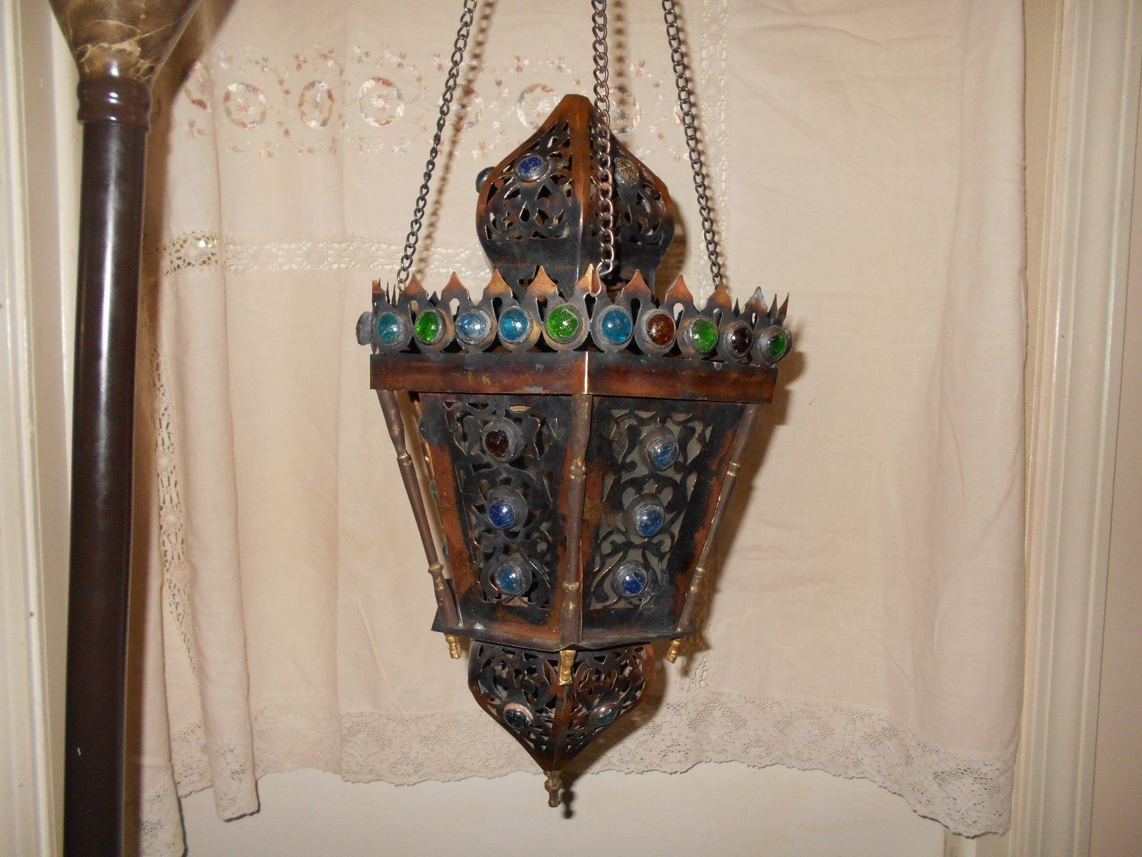 Title (ebay affiliate link): Vintage Moroccan Persian Turkish Islamic Brass and glass hanging lantern lamp