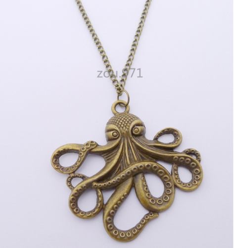 Octopus Necklace Steampunk Nautical Squid Kraken Pirate antique Bronze Jewelry @