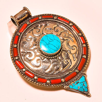 Title (ebay affiliate link): ANTIQUE TURQUOISE, RED CORAL 925 SILVER TIBETAN PENDANT JEWELRY