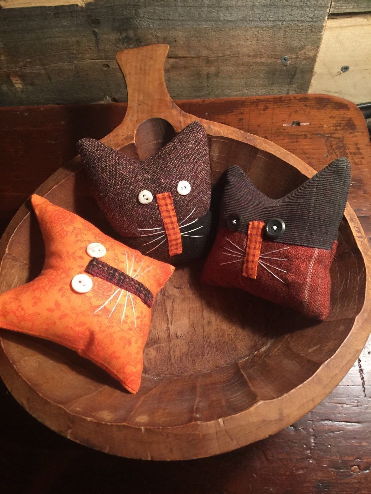 Title (ebay affiliate link): Primitive Old Home Cats Bowl Fillers Set of 3 Autumn /Halloween