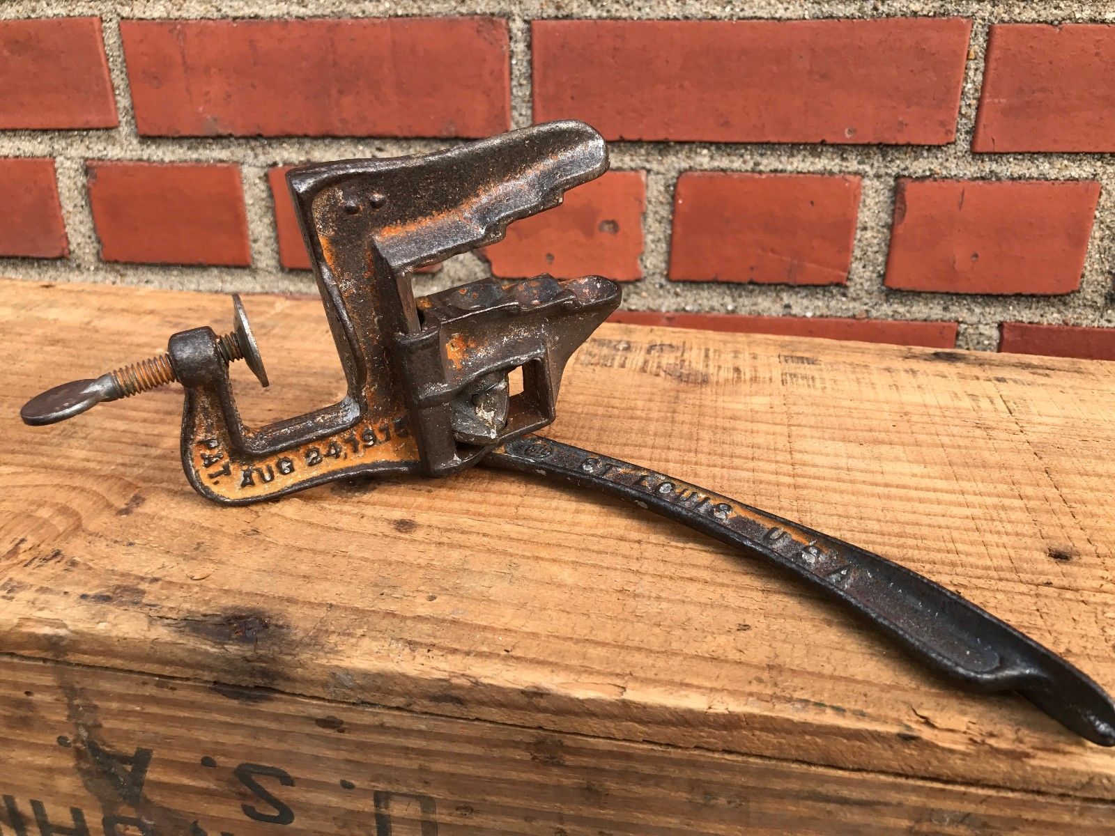 Title (ebay affiliate link): Antique Embossed Cast Iron Home Nut Cracker dated 1915 Vintage Primitive Tool
