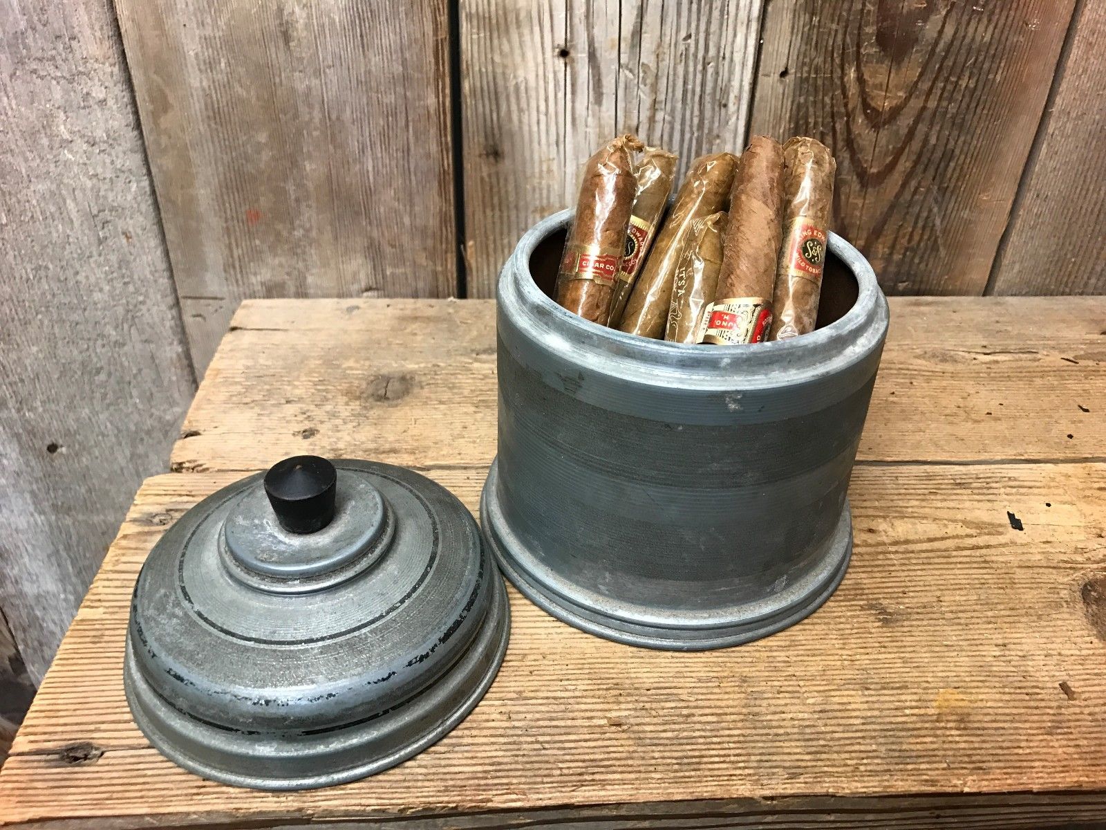 Title (ebay affiliate link): Old Vintage Wood Lined Metal Cigar Humidor ~ Estate Find