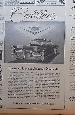 Title (ebay affiliate link): 1957 newspaper ad for Cadillac - Greatness Never Achieved Suddenly, car & crest
