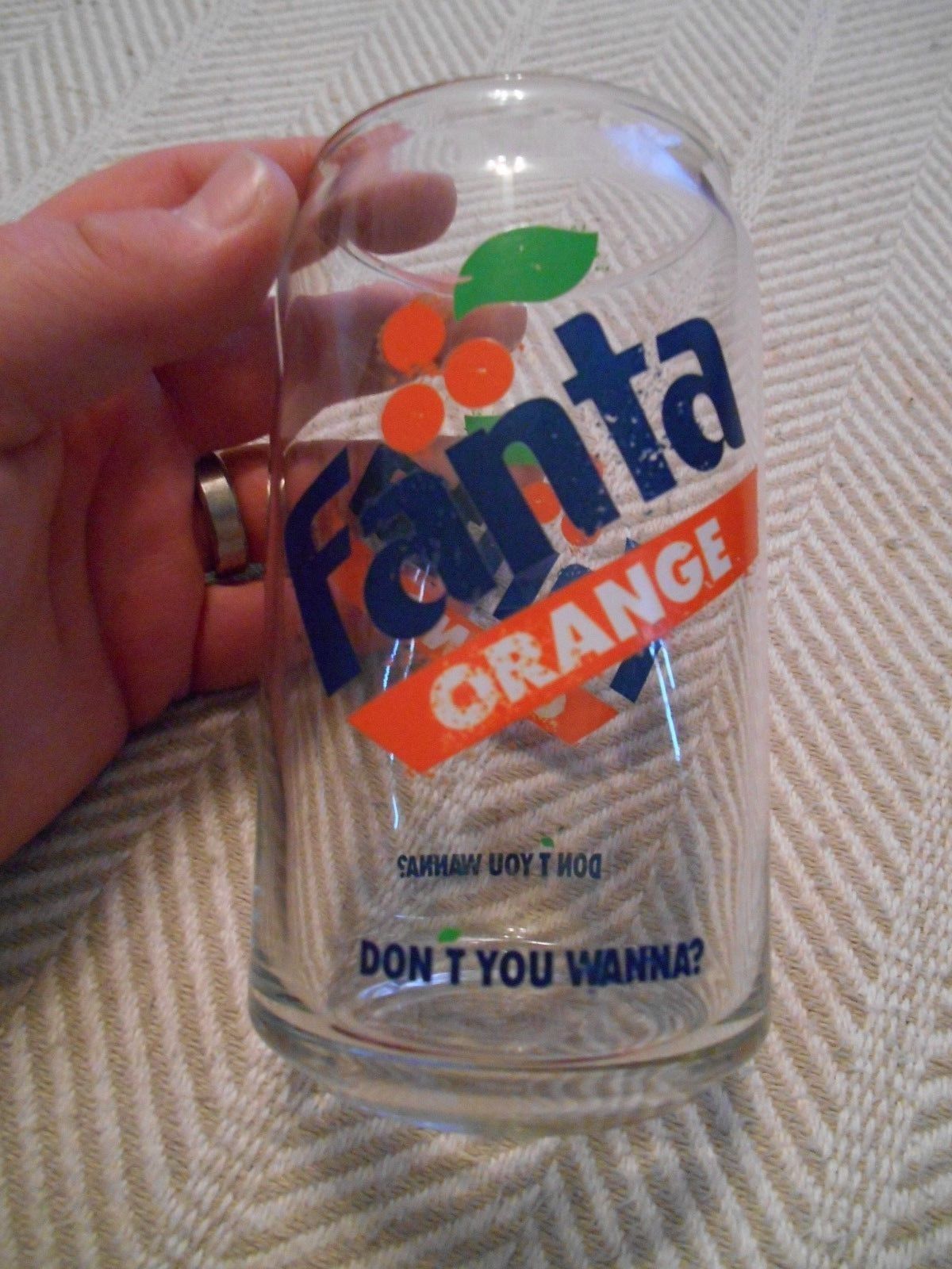 Title (ebay affiliate link): Fanta Orange Glass, Soda Can Style, 5 1/4 inche tall, Don''t You Wanna?