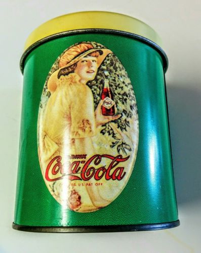 Title (ebay affiliate link): Vintage Drink Coca-Cola Delicious & Refreshing Woman Round Tin- 1970s