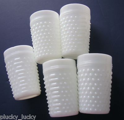 Five Anchor Hocking Hobnail Milk Glass Tumblers