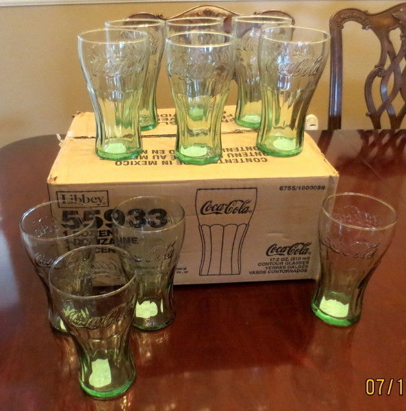 Title (ebay affiliate link): Set of 10 Libbey Verde /Green Coca Cola Glass 17.2 ounce Tumblers