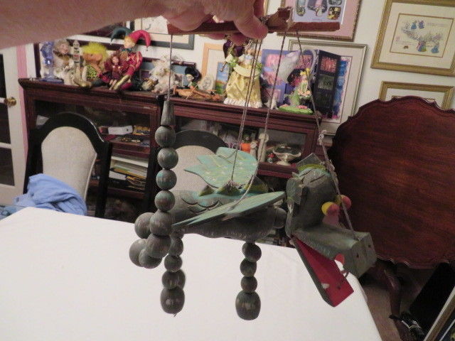 Title (ebay affiliate link): Vintage Hand Painted Carved Wood Mythical Hanging Dragon Puppet Folk Art