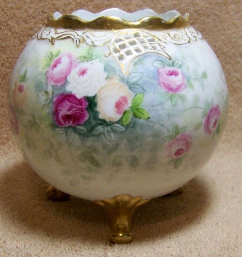 Antique Leonard Austria Vienna "HAND-PAINTED PORCELAIN ROSE BOWL VASE signed