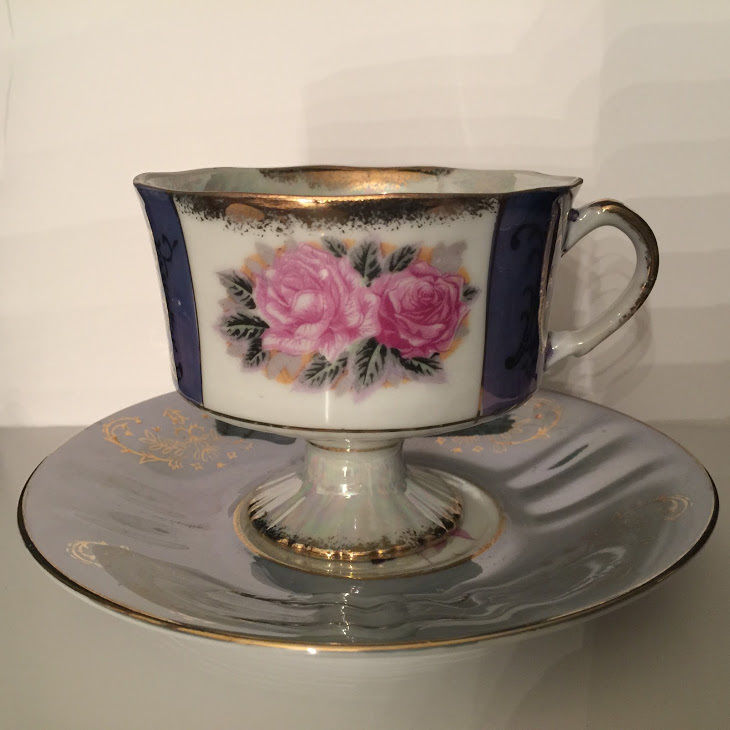 Stunning China Teacup and Saucer Iridescence Blue and Roses