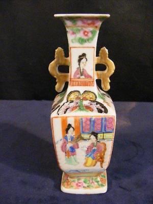 SCARCE SMALL ANTIQUE CHINESE EXPORT ROSE MEDALLION 5.75" TALL SQUARE VASE
