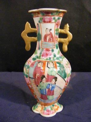 SCARCE SMALL ANTIQUE CHINESE EXPORT ROSE MANDARIN 5.5" TALL HANDLED VASE