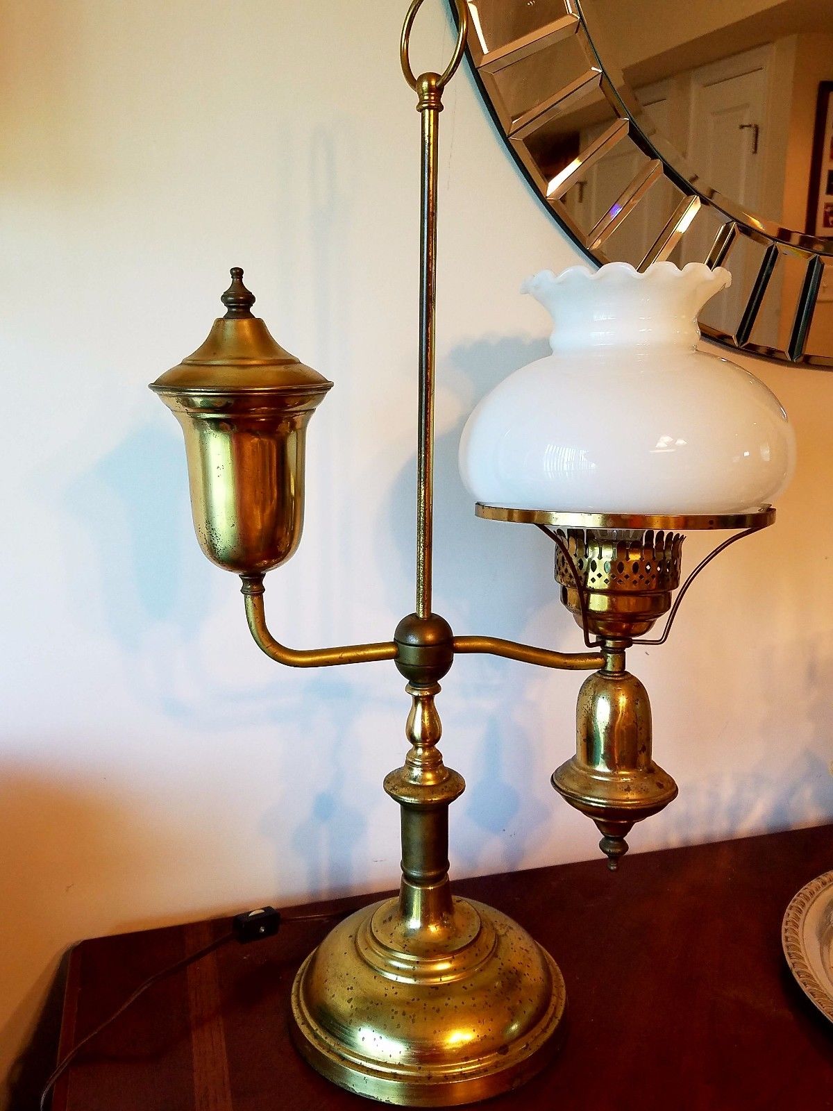 Antique Brass STUDENT LAMP Oil Kerosene Converted electric 1800s