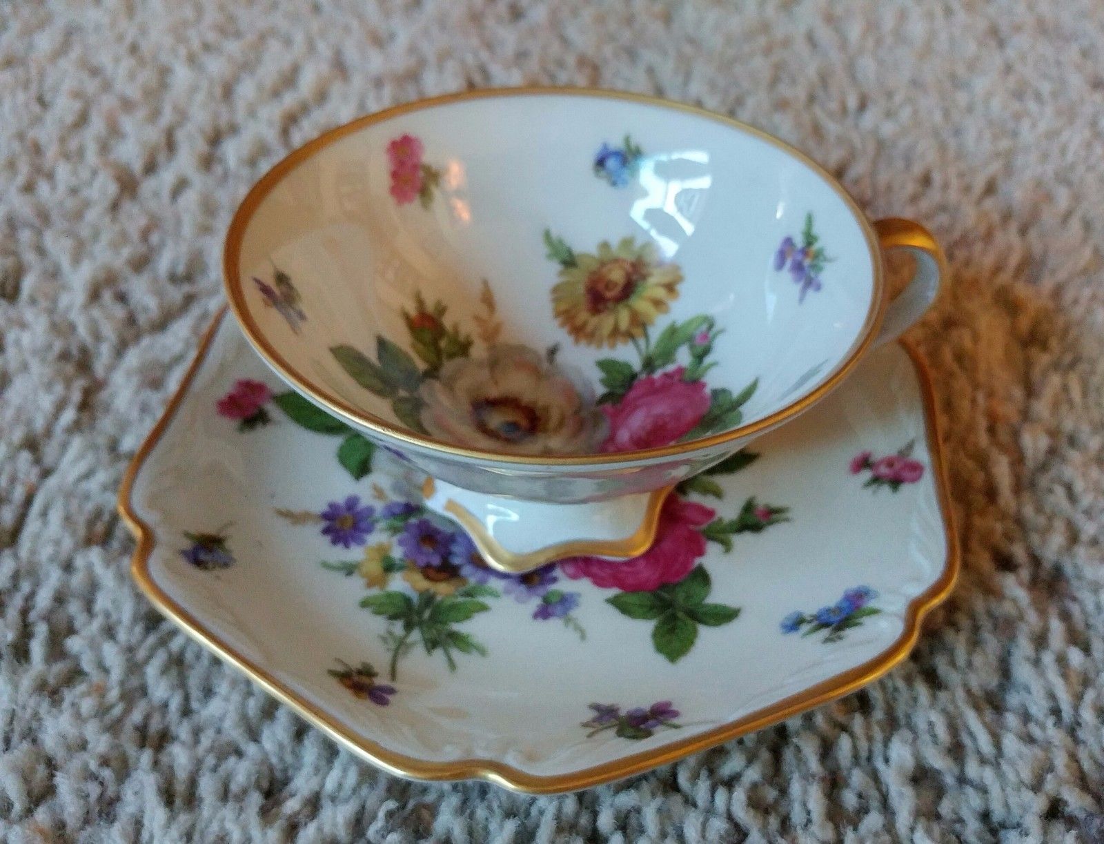 Mitterteich Bavarian China: Meissen Floral - Gold Trim Tea Cup Set
