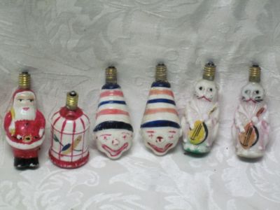 6 VINTAGE FIGURAL WHITE MILKGLASS C6 LIGHT BULBS