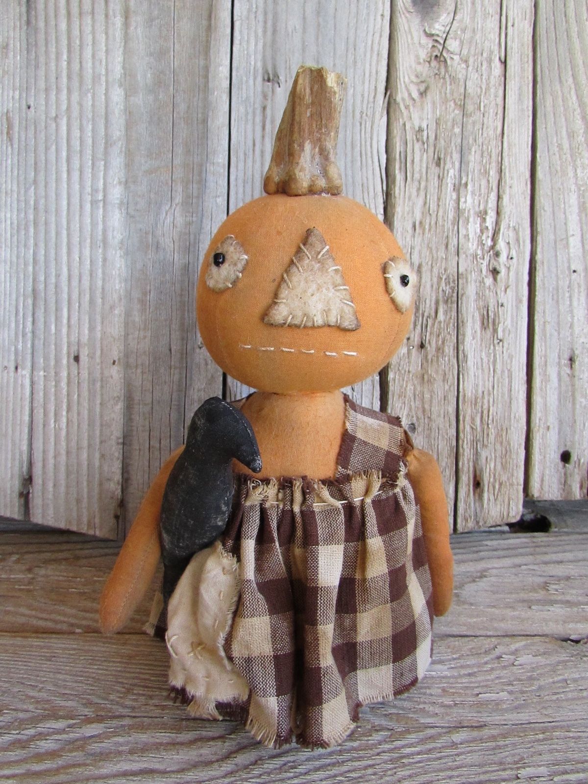 Title (ebay affiliate link): Primitive Folk-Art Grungy Pumpkin Girl Stump w Crow Doll Sm