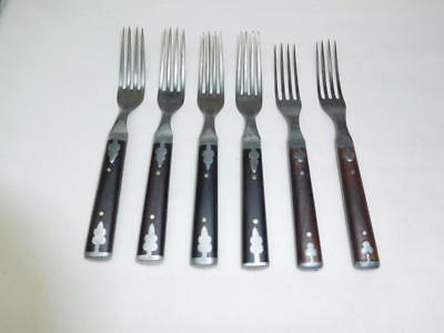 6 Antique Civil War Era 4 Prong Forks Wood Handle Pewter Inlay