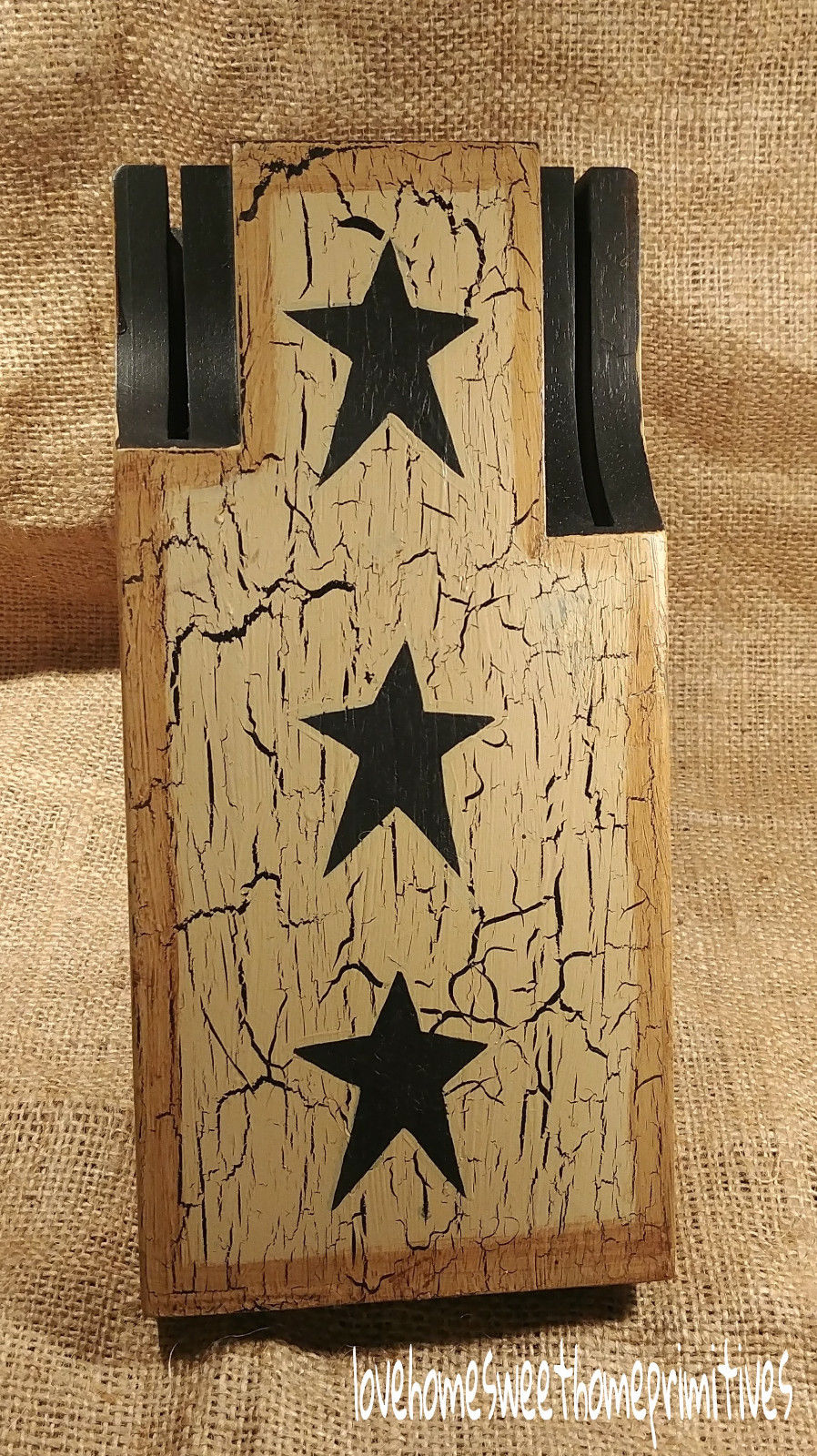 Title (ebay affiliate link): Primitive Cracke Tan & Black Star Wood Knife Block ~ Hand Painted