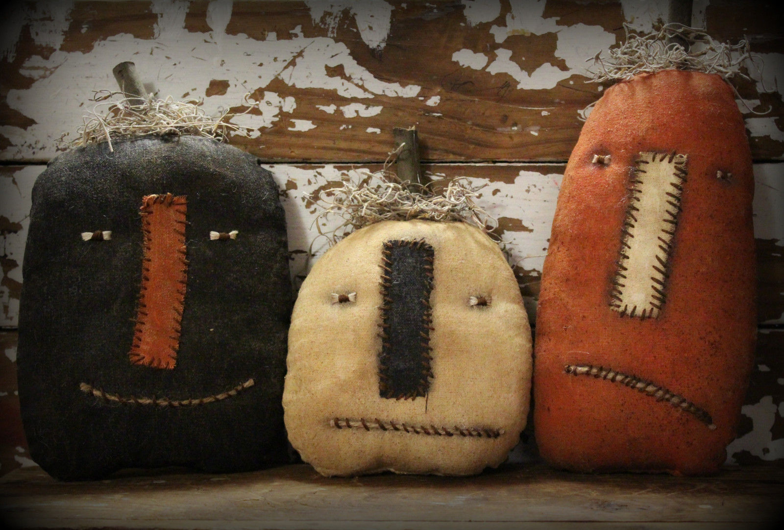 Primitive Halloween Fall Pumpkin JOL Trio Sitters Tucks