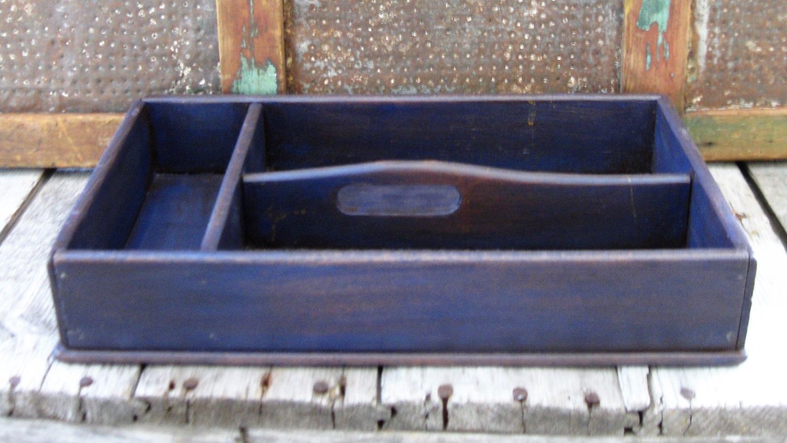 Title (ebay affiliate link): Antique Wood Silverware Tray Quaker Blue Milk Paint