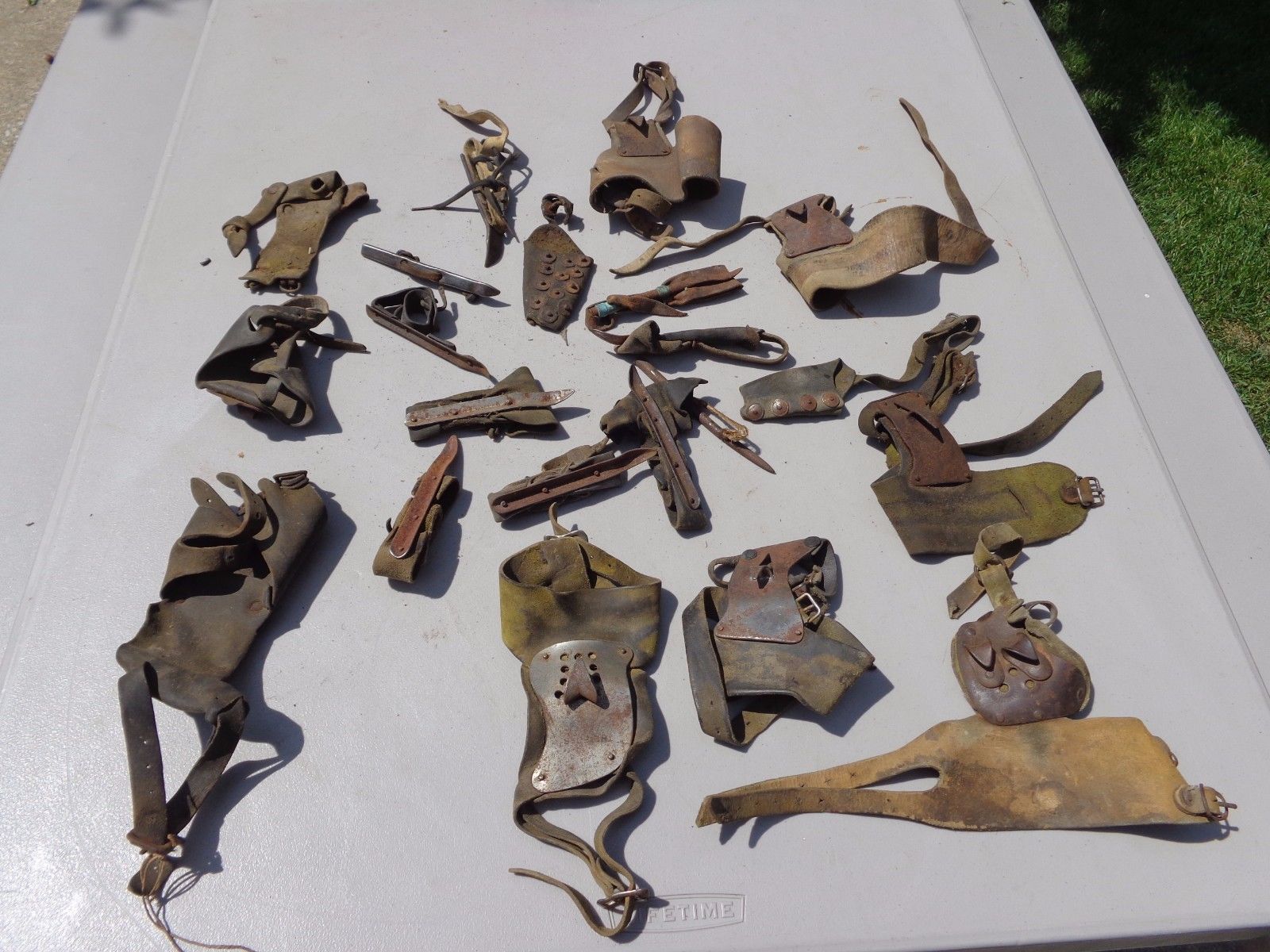 Antique Primitive Hand Leather Corn Sheller Schucker''s Tools ~ Large 23 LOT