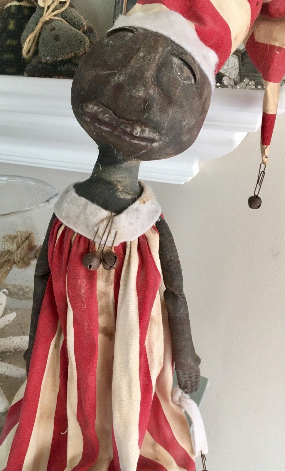 Title (ebay affiliate link): EXTREME primitive Santa BLACK make-do doll on spindle wearing by erikascupboard