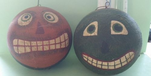 Title (ebay affiliate link): Primitive Halloween Jack-o-Lantern JOL PUMPKIN & WAYTRMELON MAN BALLS ORNAMENTS