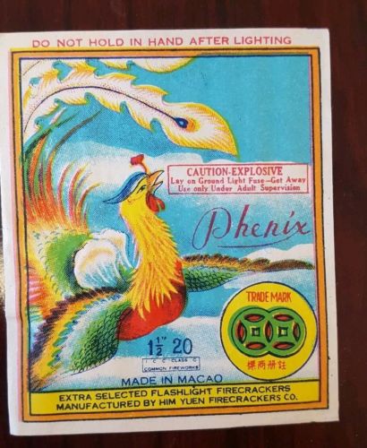 Title (ebay affiliate link): Vintage Phenix Brand Firecracker Label - Class 4. 20''s Excellent!