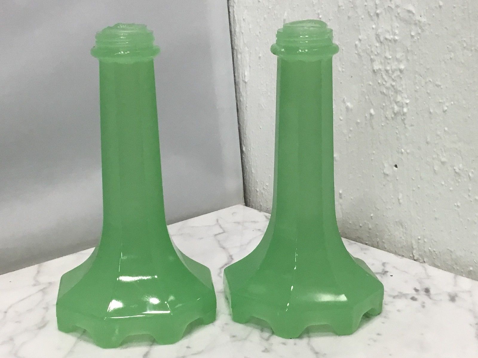2 Pair Matching Vintage Jadeite Jadite Oil Kerosene Lamp Bases 7 1/2" Tall Green