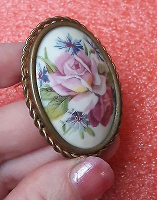 rare ANTIQUE LIMOGES BROOCH FRANCE PORCELAIN FLOWERS 40 MM