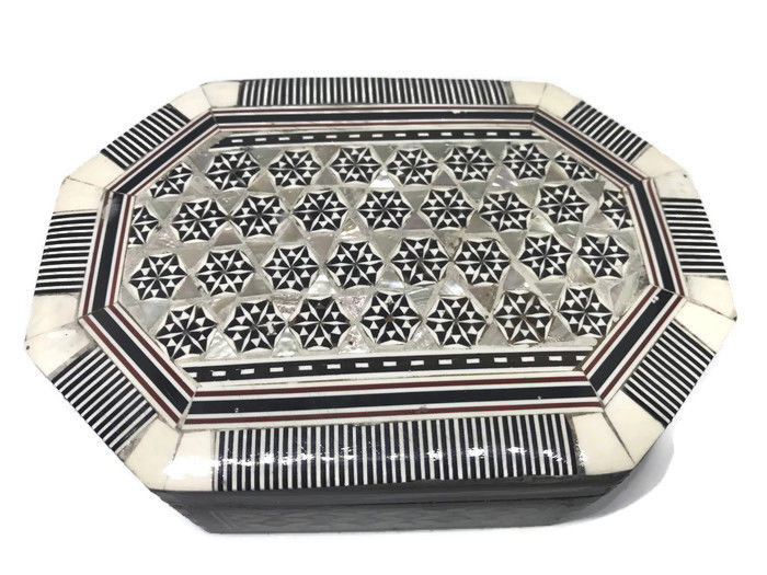 Title (ebay affiliate link): Vintage & antique mini jewelry box,HandMade woodenware,Seashell syria box 1948,