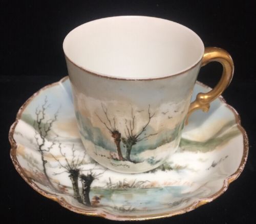 H & C Demitasse Cup & Saucer. Beautiful Scene (Z29)