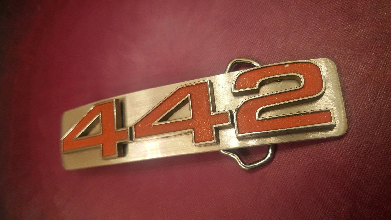 Original 442 Oldsmobile Cutlass grill emblem belt buckle.
