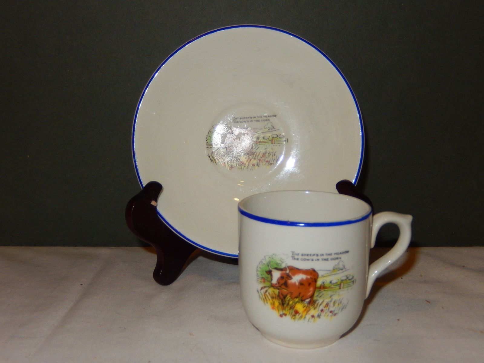 Childs''s/Doll''s Cup and Saucer; Unmarked: "...COWS IN THE CORN"