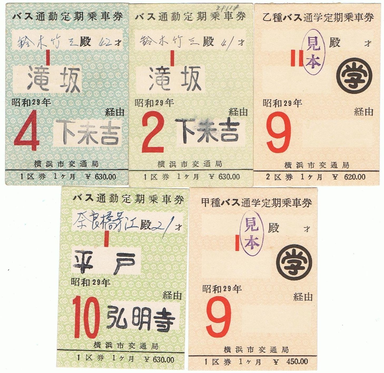 Railway tickets Japan Yokohama used passes mixture, as seen 1954