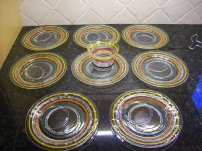 LOT OF 8 ANCHOR HOCKING BANDED RING PLATES