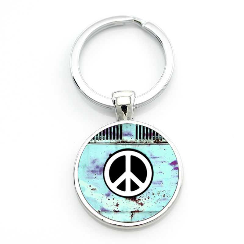 Title (ebay affiliate link): Vintage Hippie Peace Sign Van Bus keychain fashion pendant key chain ring holder
