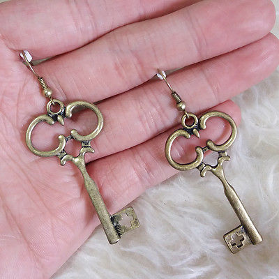 Title (ebay affiliate link): Vintage Antique-Brass Color Metal Key Charm Pendant Drop Dangle Hook Earrings