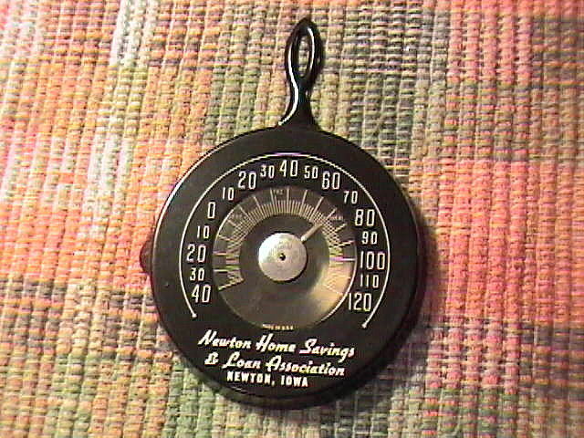 VINTAGE ADVERTISING BLACK FRYING PAN METAL THERMOMETER - NEWTON, IOWA !!