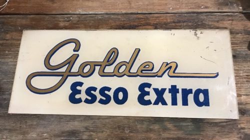 Title (ebay affiliate link): VINTAGE GOLDEN ESSO EXTRA - Reverse Glass Gas Pump Oil Sign Original