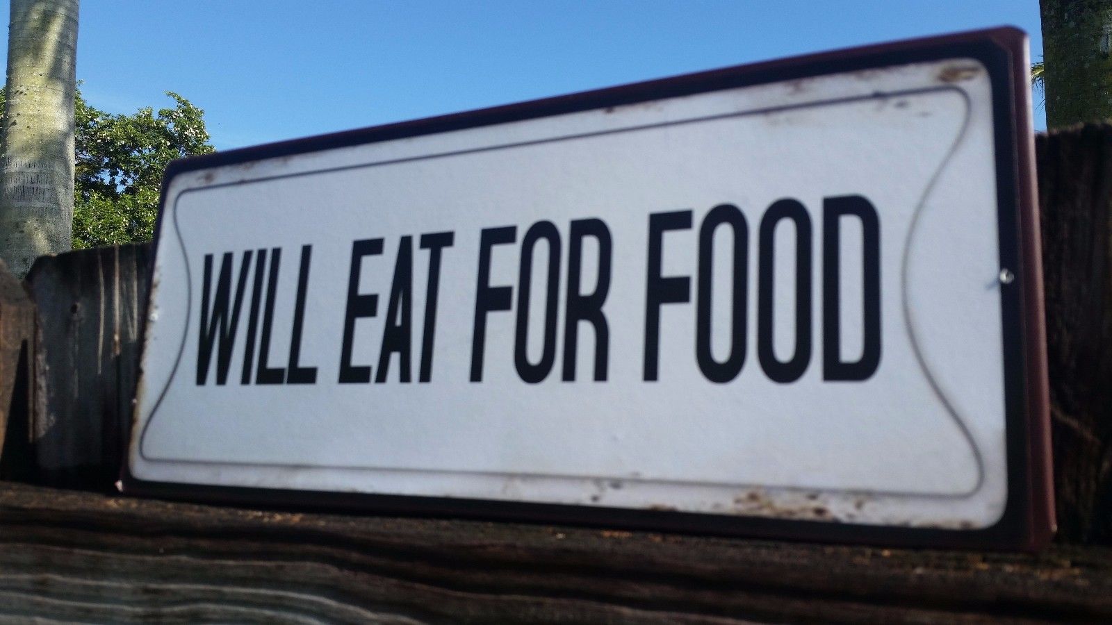 WILL EAT FOR FOOD METAL SIGN VINTAGE STYLE 12 BY 5 INCHES GAS SHOP GARAGE