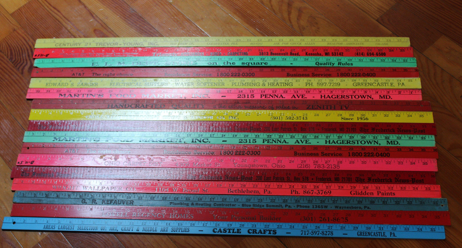 Title (ebay affiliate link): 17 Vintage Yardsticks Wood Wooden Advertising Art Craft Hobby Lot