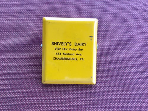 VINTAGE ADVERTISING TIN METAL CLIP / SHIVELY''S DAIRY CHAMBERSBURG, PENNSYLVANIA