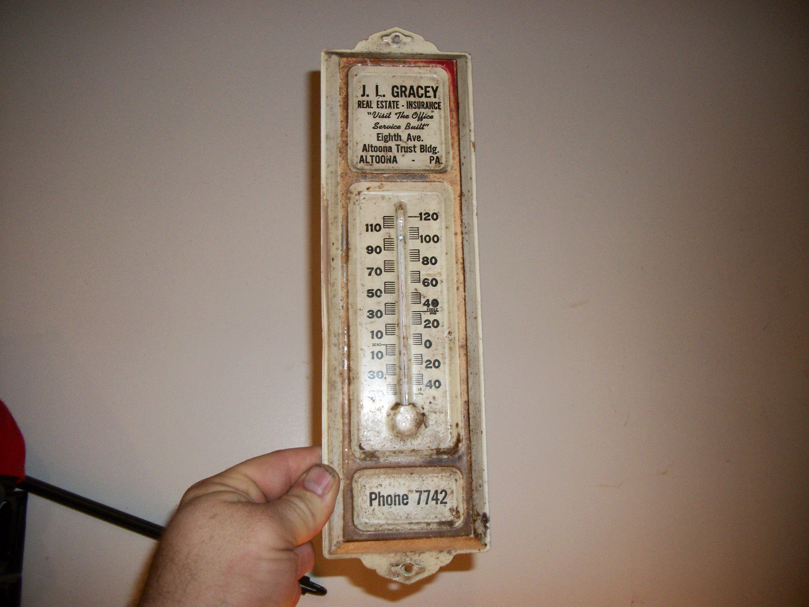 VINTAGE J.L GRACEY REAL ESTATE THERMOMETER ALTOONA PA L@@K
