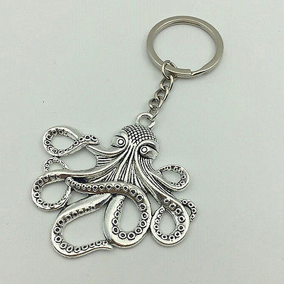 Octopus Key Ring Steampunk Nautical Squid Kraken Pirate antique Silver Jewelry *