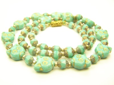 ANTIQUE CZECH TURQUOISE GLASS BEADS NECKLACE w CATS