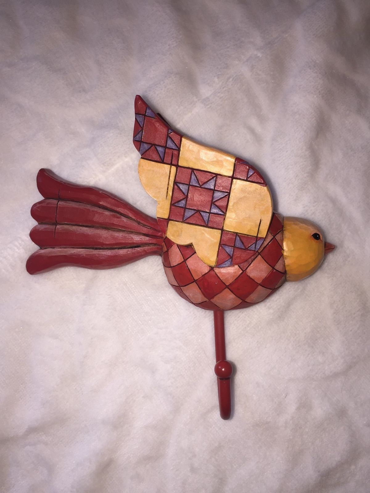 Title (ebay affiliate link): Jim Shore Hearwood Creek SUPER RARE Wall Mounted Red/Yellow Bird with "Key Hook"