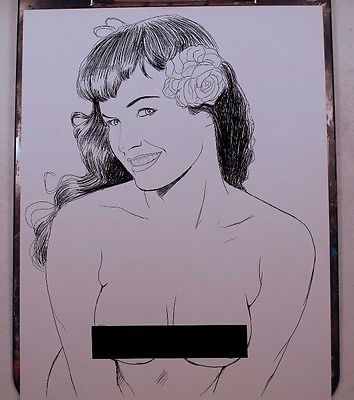 Title (ebay affiliate link): BETTIE PAGE NUDE PINUP INK DRAWING 8.5x11 ORIGINAL COMIC ART PRINT by Key
