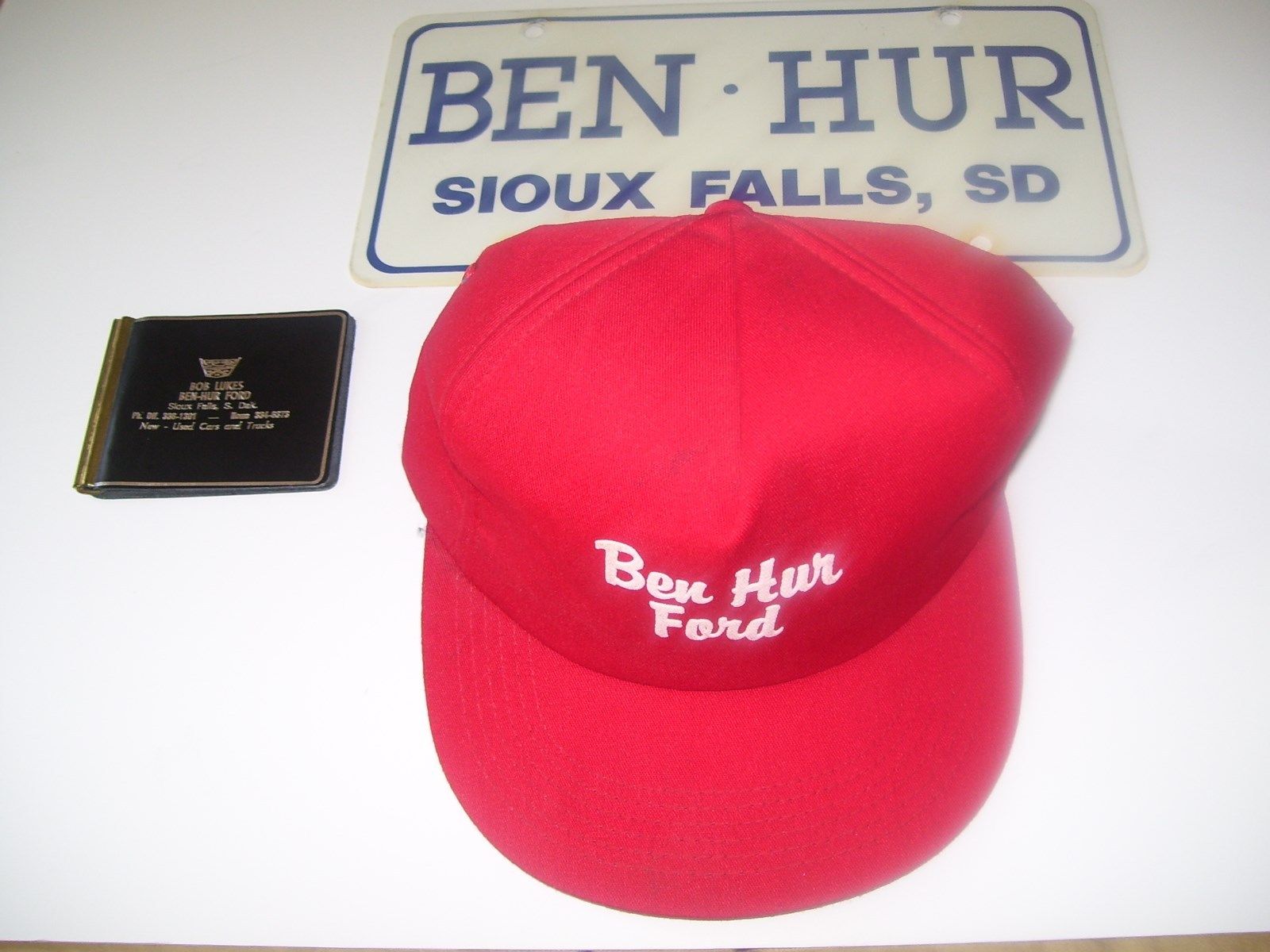 Title (ebay affiliate link): BEN HUR FORD SIOUX FALLS TRUCK CAP DEALER LICENSE & LEATHER MONEY CLIP