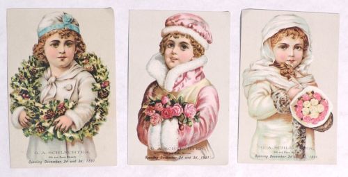 Title (ebay affiliate link): P961. Antique 3: G.A SCHLECHTER Opening Ad EMBOSSED Victorian Trade Cards (1891)